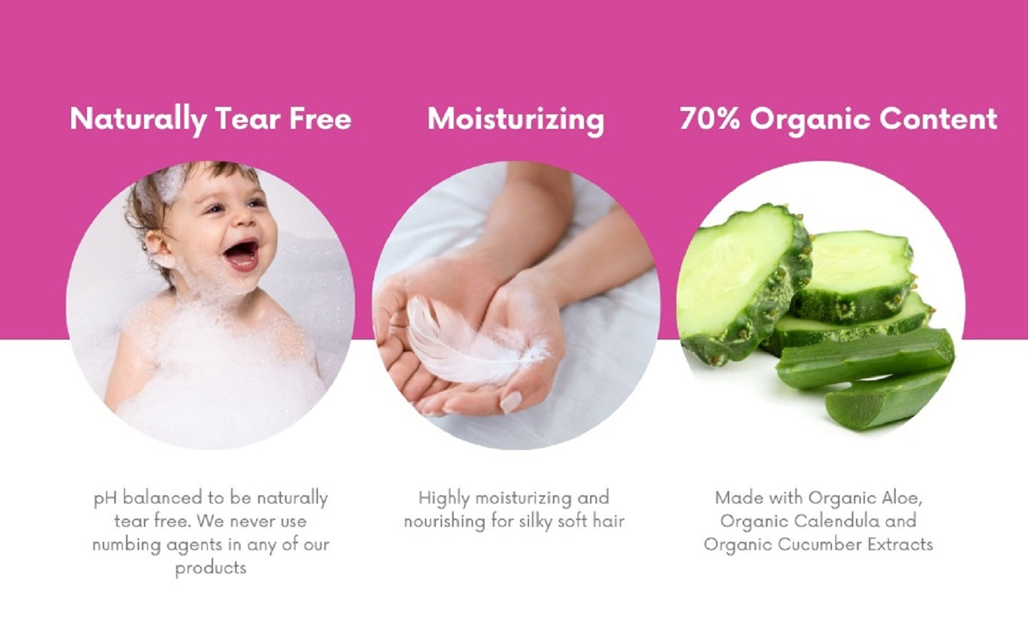 Organic Aloe, Organic Calendula, & Chamomile. 70% Organic Content.