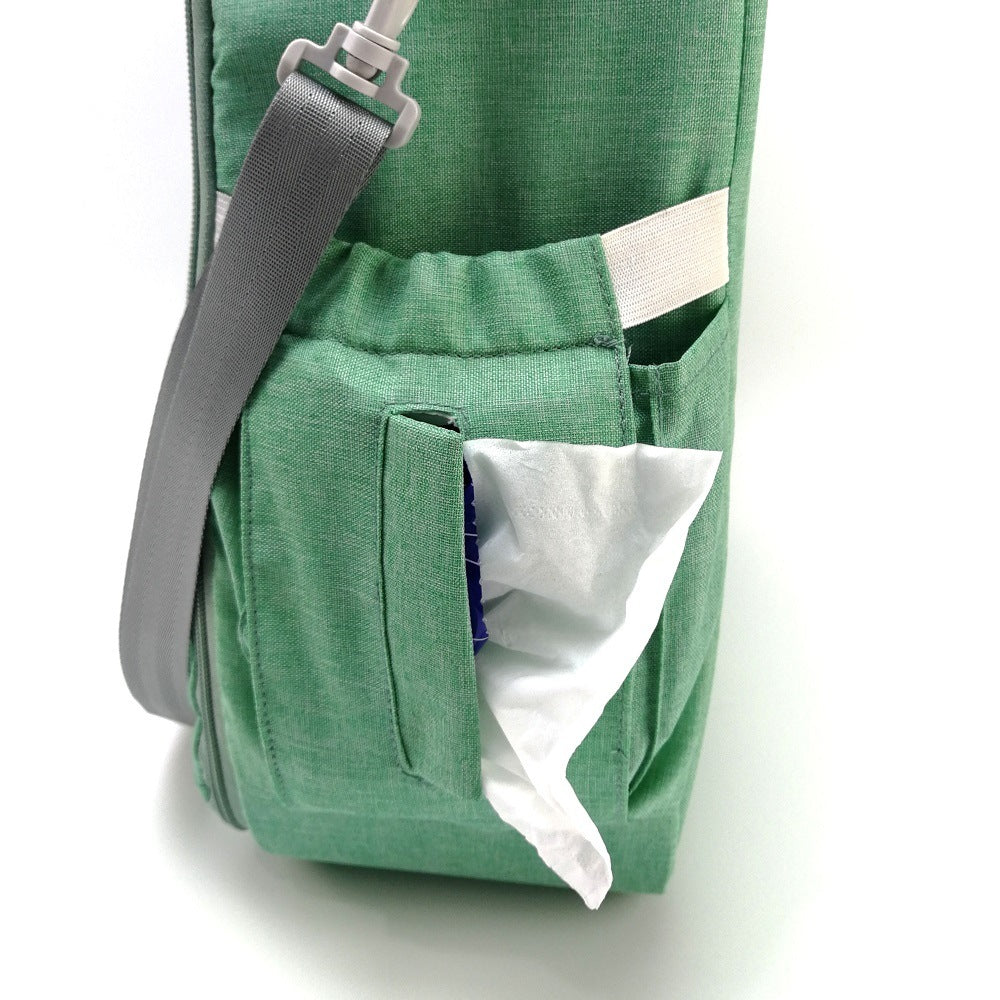 The stylish diaper bag combines as travel crib, nappy bag and portable baby changing station all in one, with practical, multipurpose, convenient and generously spaced bag, let your baby sleep anywhere comfortable and securely.